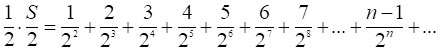 Розглянемо різницю лівих частин рівностей [8] і [9]: S – (1/2)·S = S/2; та різницю правих частин рівностей [8] і [9] (при цьому звівши доданки зі спільними знаменниками).