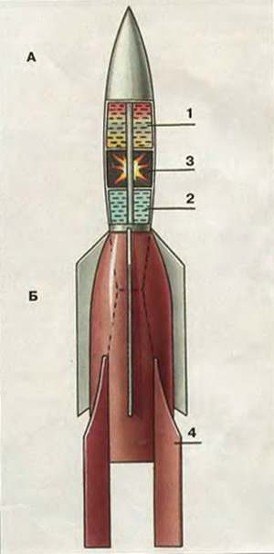 А теперь обратимся к теоретической части работ учёных и постараемся ответить на вопрос: почему летит ракета, схематическое устройство которой приведено на рис.3.